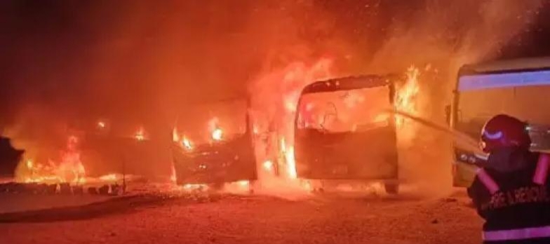 മൂന്ന് സ്കൂൾ ബസുകൾ കത്തിനശിച്ചു ; തീയിട്ടതാണെന്ന് സൂചന